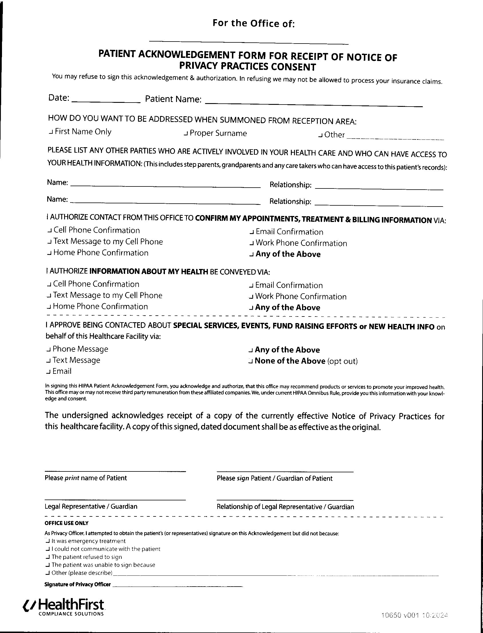 Print and fill out these patient forms to expedite your first visit with us. We want to make your transition to our office as smooth as possible so you have the best experience.